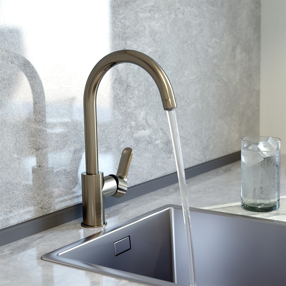 Смеситель для кухни Cuba в трендовом оттенке сатин с каналом для фильтрованной воды представляет уникальную технологию управления фильтрованной водой, которая практически не имеет аналогов. Теперь, чтобы налить стакан чистой воды, не нужна вторая ручка, — достаточно просто повернуть основную ручку в закрытом состоянии. Встроенный отдельный канал для фильтрованной воды позволяет, при подключении к любому фильтру, наслаждаться чистой питьевой водой прямо из смесителя. Нет необходимости устанавливать отдельный смеситель и сверлить под него отверстие.