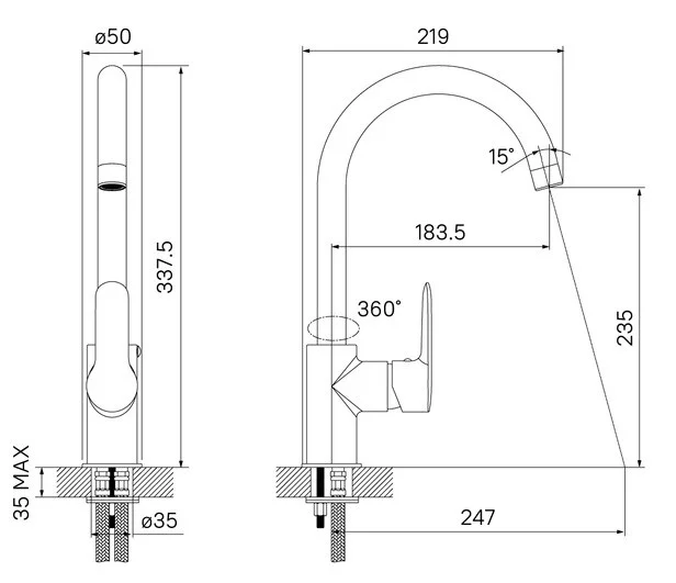Смеситель для кухни IDDIS® изготовлен из высококачественной первичной латуни, прочной, безопасной и стойкой к коррозии. Инновационные технологии литья и обработки латуни, а также увеличенная толщина стенок смесителя обеспечивают его стойкость к перепадам давления и температур.