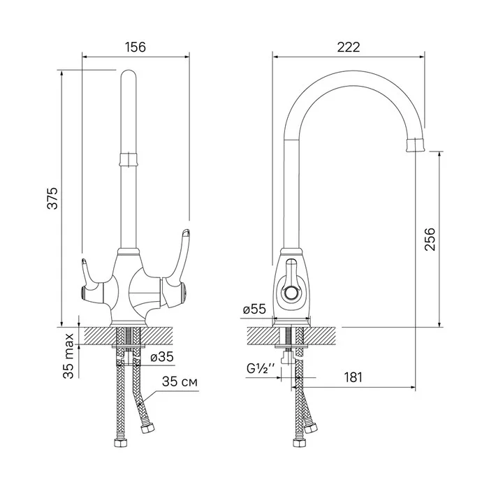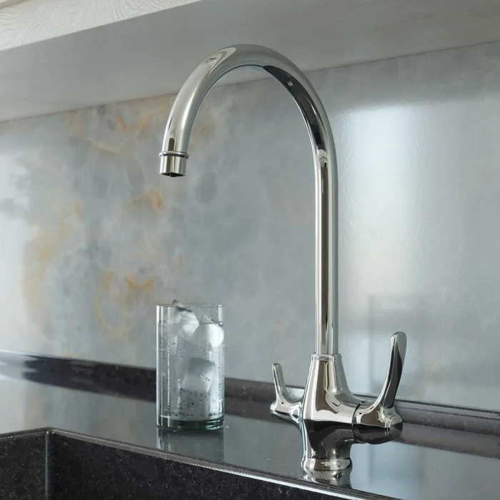 Смеситель для кухни с каналом для фильтрованной воды, однозахватный, латунь, увеличенное никель-хромовое покрытие, керамический картридж Softap, двухканальный пластиковый аэратор Neoperl М24 с дополнительным каналом для питьевой воды. В комплекте: гибкая подводка, крепеж. Упаковка: картонная коробка, индивид мешок.