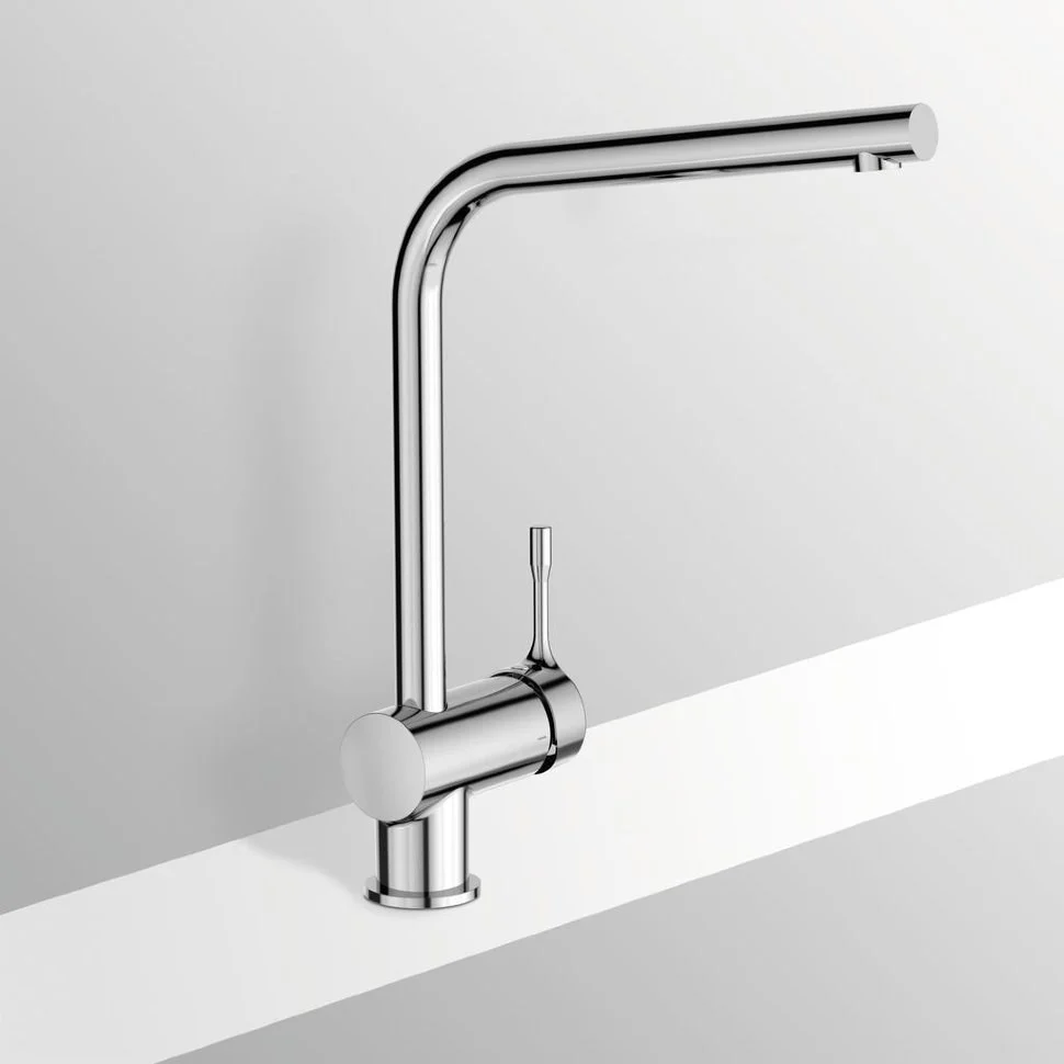 CERALOOK Однорукоятковый смеситель для кухонной мойки с высоким трубчатым поворотным изливом (длина излива 225 мм, высота - 322 мм), угол поворота 360?, рукоятка сбоку, керамический картридж 38 мм Firmaflow® с функцией HWTC (ограничение максимальной температуры горячей воды), с функцией CLICK (ограничение потока воды); гибкая подводка G3/8" (антибактериальные шланги PEX), монтаж IS-Fix - крепеж на центральной гайке M33x1,5 с двумя блокирующими винтами, с пластиковой опорной пластиной для более стабильного монтажа на мойке из нержавеющей стали; аэратор Perlator; металлическая рукоятка, индикаторы горячей / холодной воды на корпусе