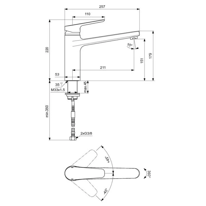CERAPLAN III Смеситель для кухонной мойки, монтаж IS-Fix - крепеж на центральной гайке M 33x1,5 с двумя блокирующими винтами (обеспечивает стабильную фиксацию смесителя), с пластиковой опорной пластиной для более стабильного монтажа на мойке из нержавеющей стали, литой излив, угол поворота 360°, аэратор Perlator, керамический картридж 35 мм с функцией HWTC (ограничение максимальной температуры горячей воды), металлическая рукоятка с индикаторами горячей / холодной воды, гибкая подводка G3/8", шланги стандартной длины 400 мм