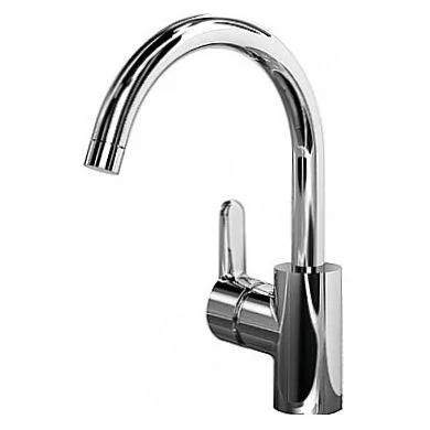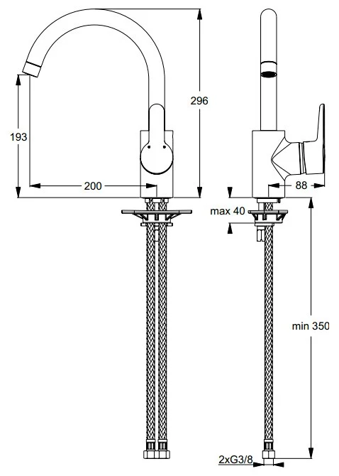 CONNECT BLUE Смеситель для кухонной мойки, система монтажа EASY-FIX (облегченный монтаж), центрирующее уплотнительное кольцо, гибкая подводка G3/8” (антибактериальные шланги PEX), картридж 40 мм IS с функцией CLICK (ограничение потока воды), с функцией HWTC (ограничение максимальной температуры горячей воды), поворотный трубчатый излив R200 мм, металлическая рукоятка с индикаторами горячей / холодной воды, аэратор CASCADE M22x1