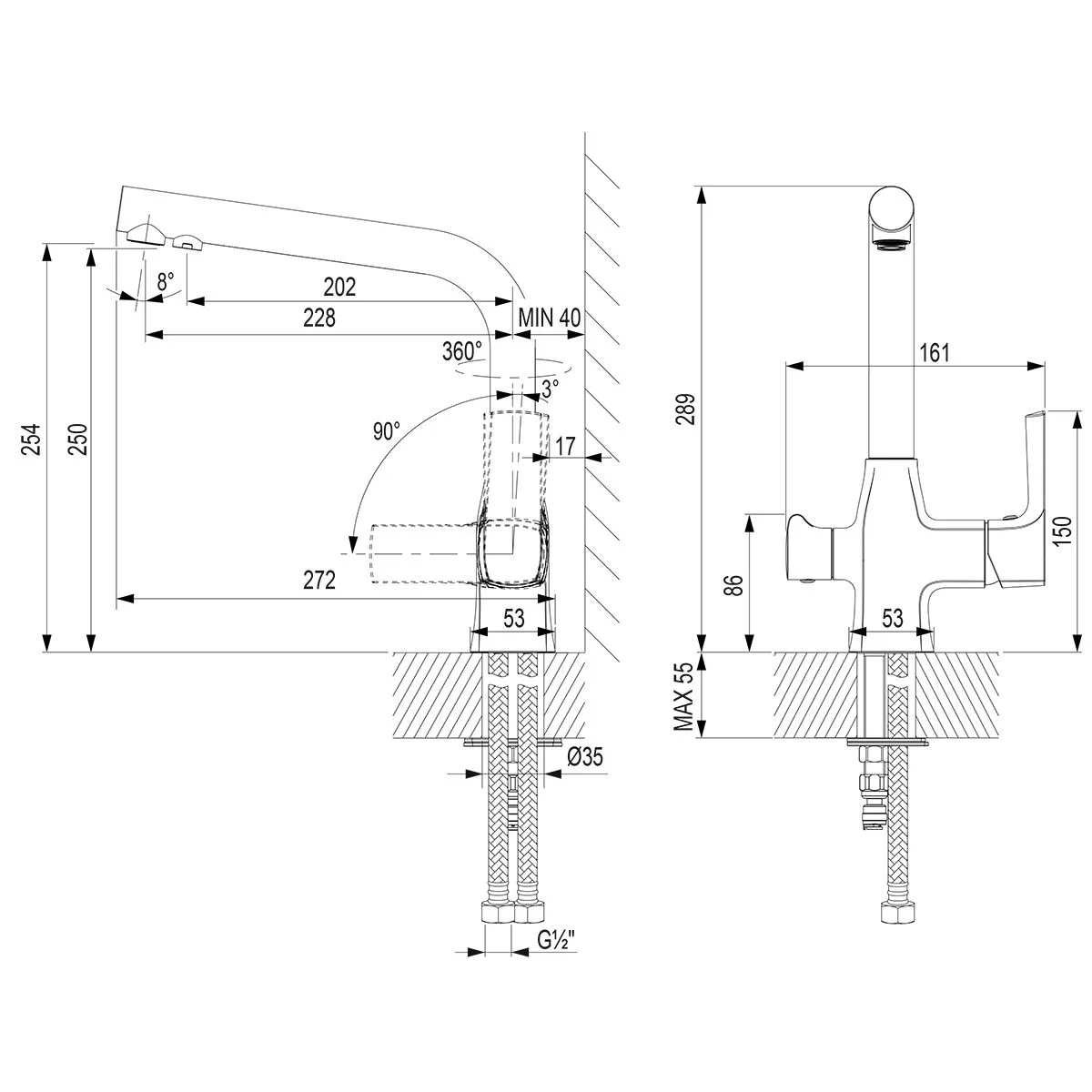 Высота излива, мм