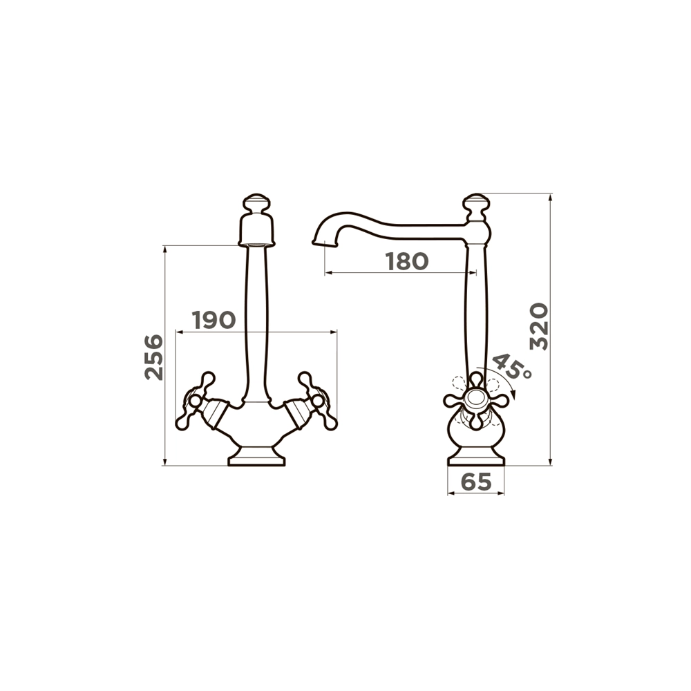 • Высокий излив обеспечивает максимально удобное использование смесителя;