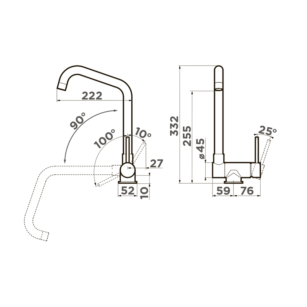 • Cмеситель для установки под окно c высоким поворотным изливом;