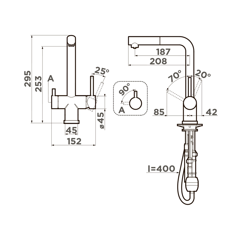 • Смеситель Takamatsu-S в категории 3 в 1: функция подачи холодной/горячей воды, возможность подключения фильтра для очистки и наличие вытяжного шланга;