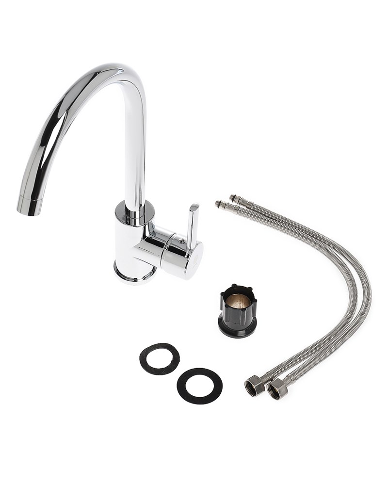 Однозахватный полимерный смеситель для кухни c поворотным изливом OneLife P04-001cr будет отлично смотреться в интерьере современной кухни. Фирменный картридж Orange обеспечит легкое управление напором и температурой воды. Вместо привычного латунного сплава он изготовлен из запатентованного высокотехнологичного полимера (выдерживает 510 000 циклов и 53 АТМ без замены изделия после теста на цикличность, исключает возможность обжечься при касании, не подвержен коррозии и окислению, стойкий к отрицательным температурам), что обеспечивает срок службы более 15 лет. Встроенный аэратор экономит воду и, обогащая струю воздухом, делает её мягкой и без брызг. Цвет глянцевый хром.
