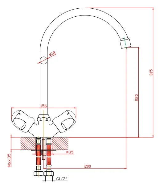 Купить Смесители для кухни производства Orange (Германия), код товара: 106725 можно выгодно в Сантемо.ру: