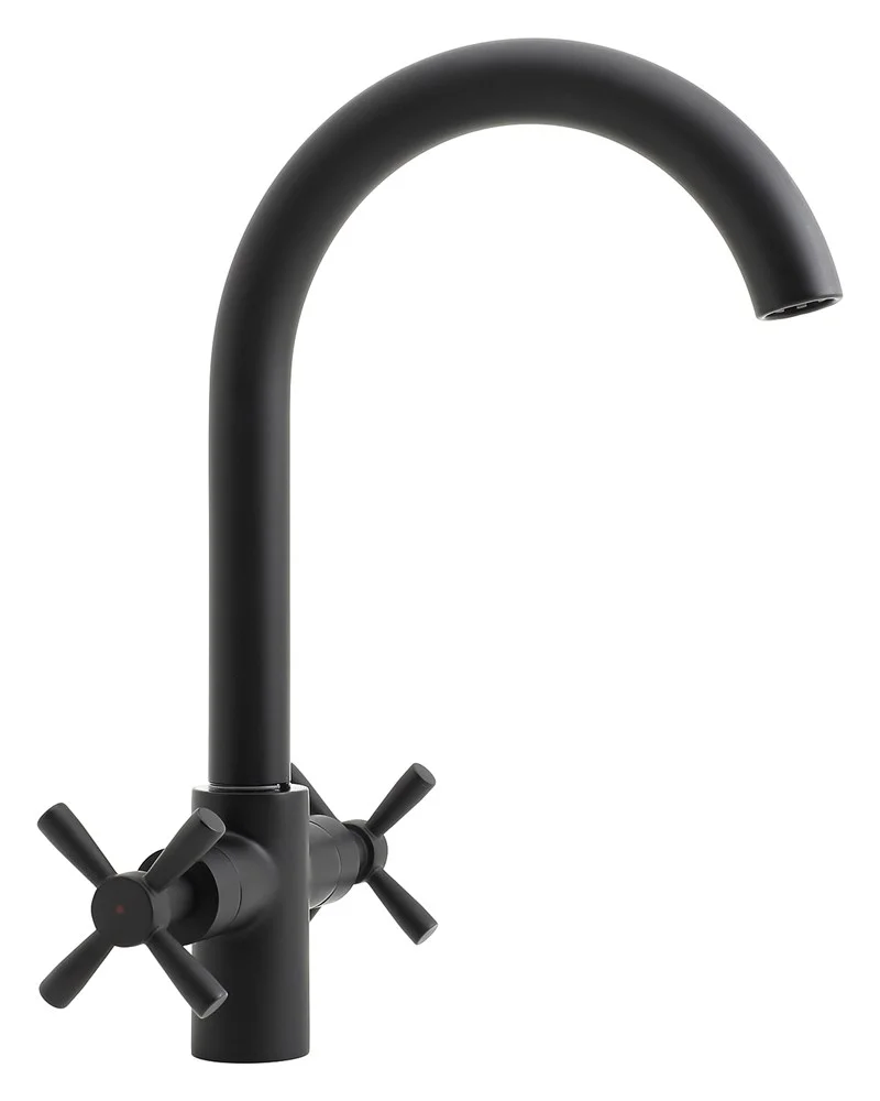 Смеситель для кухни с поворотным изливом Orange Mia гармонично дополнит интерьер в традиционном или современном стиле. Керамические кран-буксы обеспечат долговечность и легкое управление напором и температурой воды. Корпус выполнен из высококачественной латуни, не подверженной коррозии от длительного контакта с водой. Износостойкое покрытие в цвете матовый черный нанесено методом порошковой окраски с многоступенчатой системой подготовки и температурной обработкой. Встроенный аэратор экономит воду и, обогащая струю воздухом, делает её мягкой и без брызг.