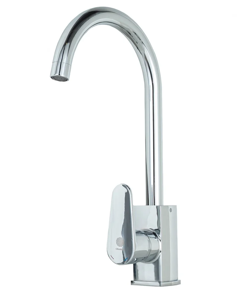 Смеситель для кухни с поворотным изливом Orange Plito – интересная модель с изящным изливом и строгим кубическим корпусом. Благодаря фирменному картриджу Orange управление напором и температурой воды легкое и плавное. Корпус выполнен из высококачественной латуни, не подверженной коррозии от длительного контакта с водой. Хромированное покрытие, за которым очень просто ухаживать мягкой салфеткой, обеспечит блеск поверхности на долгие годы. Встроенный аэратор экономит воду и, обогащая струю воздухом, делает её мягкой и без брызг.
