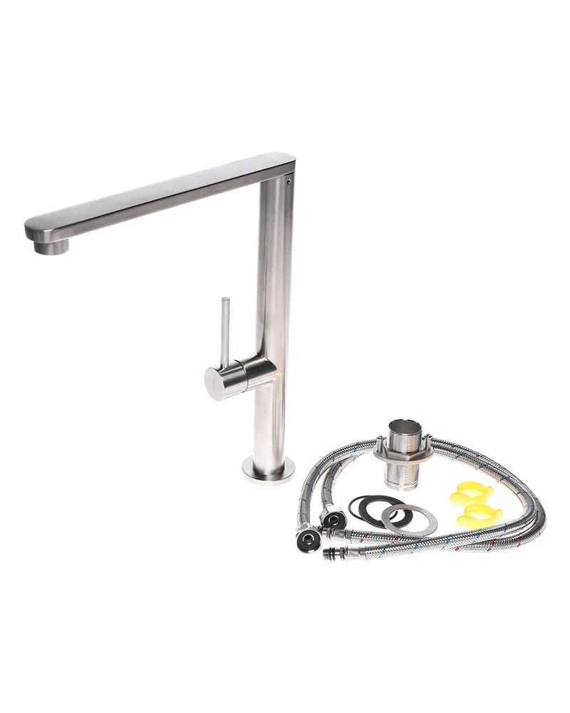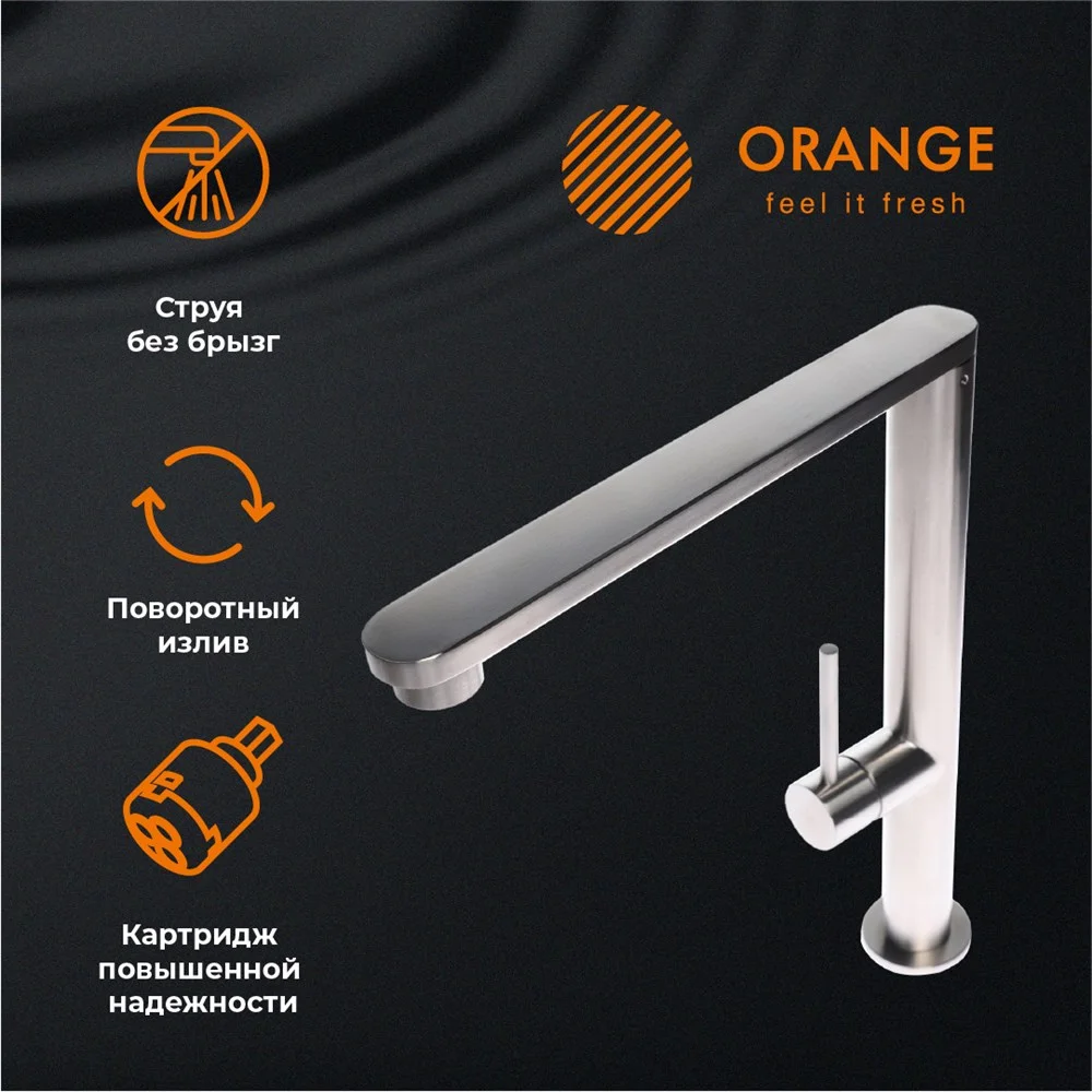 Современные смесители - это не только стиль и качество, но также удобство и функциональность. Смеситель для кухни с поворотным изливом Orange Steel отлично подойдет для двойных моек. Благодаря фирменному картриджу Orange управление напором и температурой воды легкое и плавное. Корпус выполнен из высококачественной латуни, не подверженной коррозии от длительного контакта с водой. Износостойкое покрытие в цвете матовый никель нанесено по технологии вакуумного напыления (PVD), на нем незаметны разводы от высохшей воды и отпечатки пальцев. Встроенный аэратор (с функцией легкого очищения от известкового налета) экономит воду и, обогащая струю воздухом, делает её мягкой и без брызг.