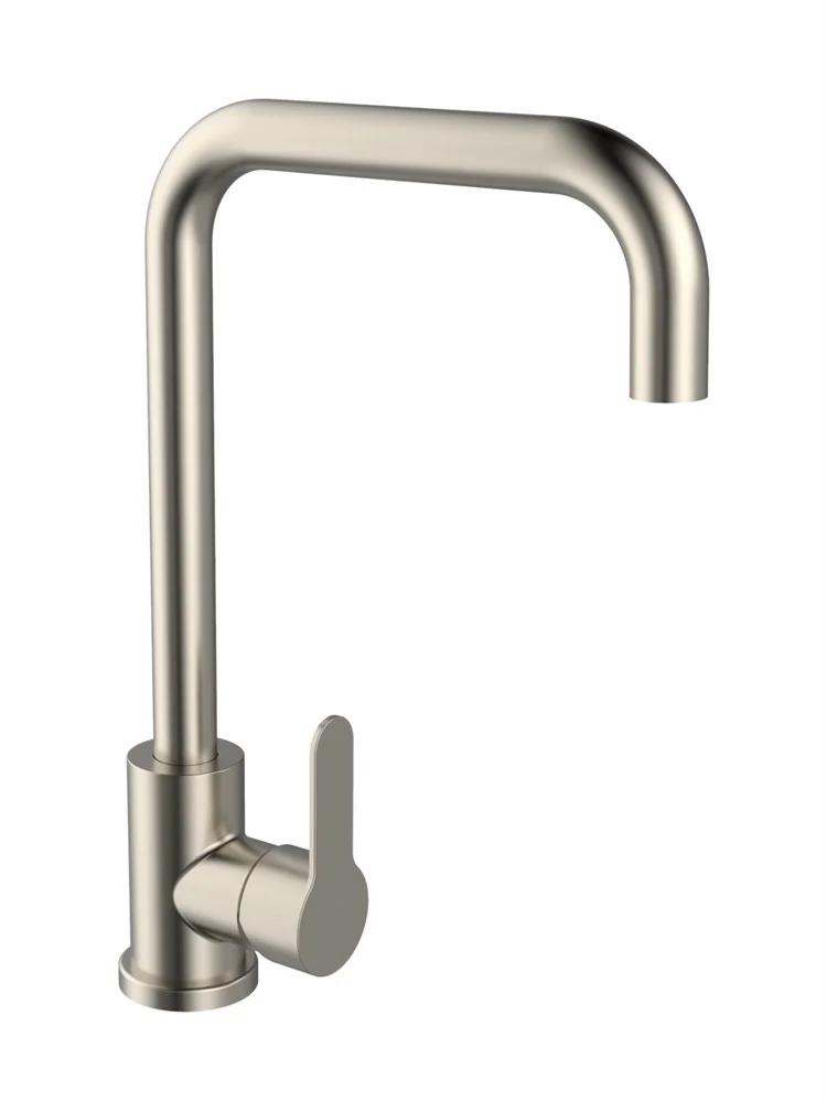 Смеситель для кухни с поворотным изливом Orange Steel украсит современный интерьер. Благодаря фирменному картриджу Orange управление напором и температурой воды легкое и плавное. Корпус выполнен из высококачественной латуни, не подверженной коррозии от длительного контакта с водой. Износостойкое покрытие в цвете матовый никель нанесено по технологии вакуумного напыления (PVD), на нем незаметны разводы от высохшей воды и отпечатки пальцев. Встроенный аэратор экономит воду и, обогащая струю воздухом, делает её мягкой и без брызг.