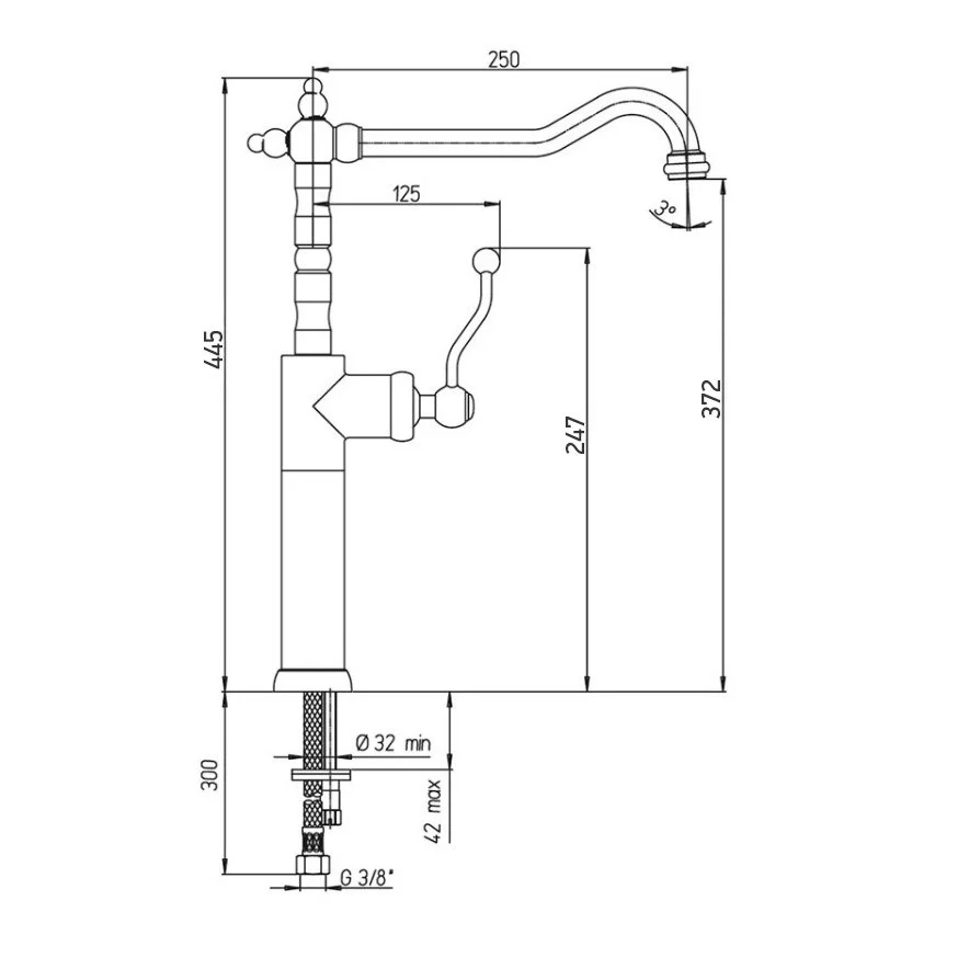 использования смесителя. Отдельно стоящий рычаг управления упрощает уборку и