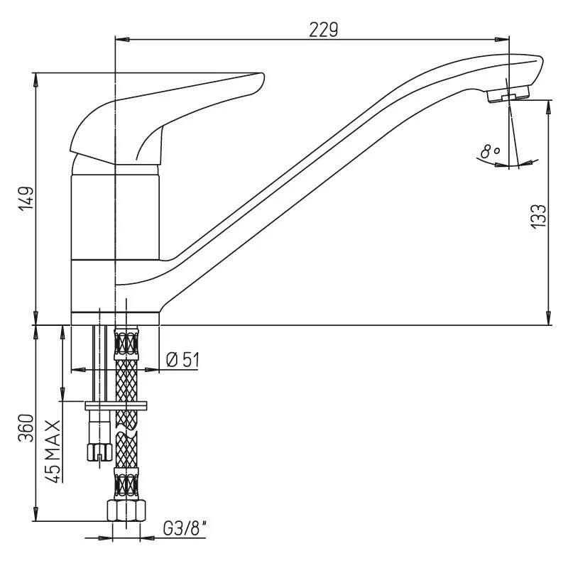 Высокий поворотный излив позволяет менять направление потока воды, использовать глубокую посуду.