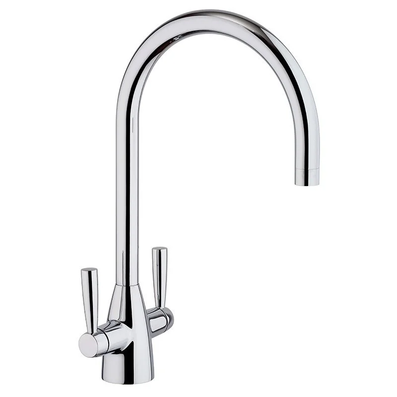 Высокий корпус и необычная форма рычагов делает дизайн двухвентильного смесителя для кухни CUCINA актуальным на долгие годы. Поворотный высокий излив позволит менять направление воды, использовать глубокую посуду. Отточенная геометрия этого смесителя позволяет комбинировать его с кухнями в стиле фьюжн, хорошо смотрится в стиле модерн или внесет завершающую деталь в интерьер в