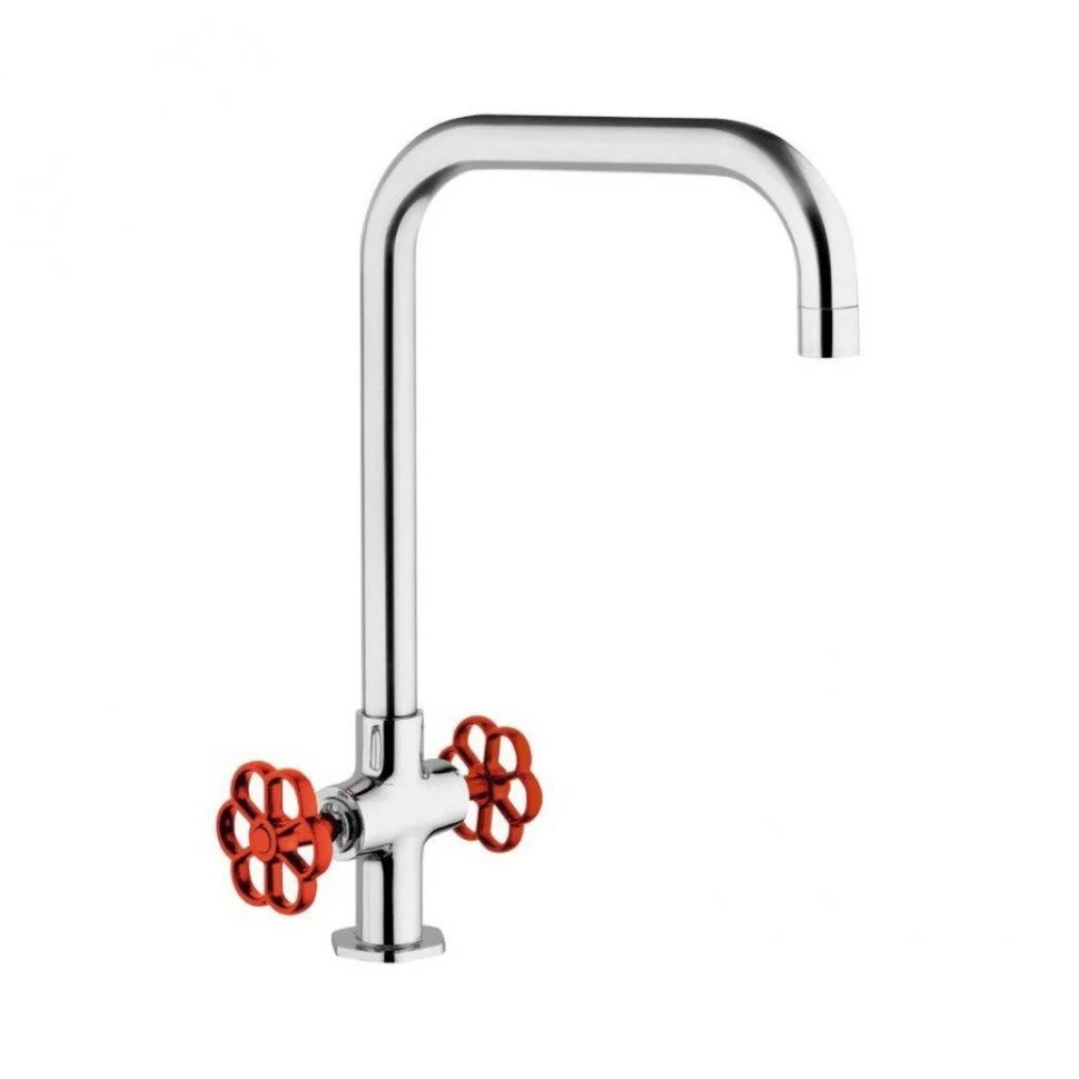 Экспериментируем на кухни не только с блюдами! Яркая форма коллекции смесителей GARAGE раскроет пространство по-новому. Обратите внимание на индустриальные вентили. Высокий корпус и поворотный излив делают двухвентильный смеситель неза