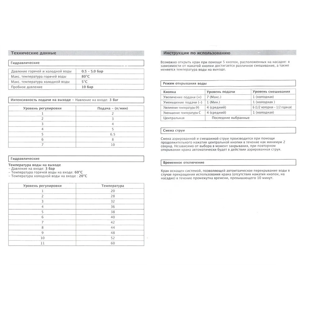 - Управление температурой и напором воды на душе
