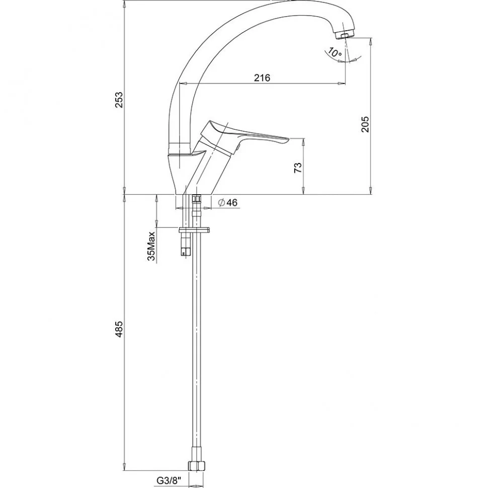 Высокий поворотный излив позволяет менять направление потока воды, использовать глубокую посуду.