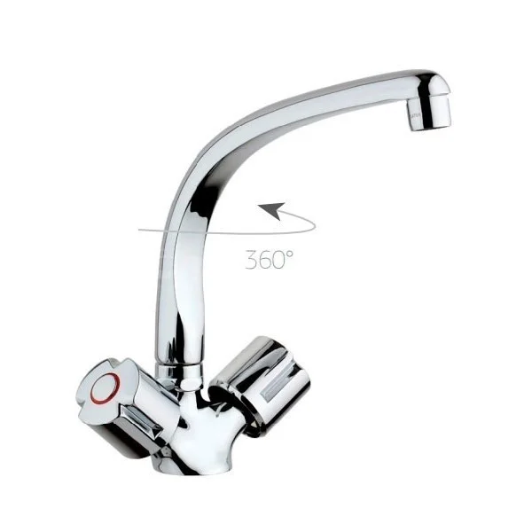 Высокий поворотный излив позволяет менять направление потока воды, использовать глубокую посуду.