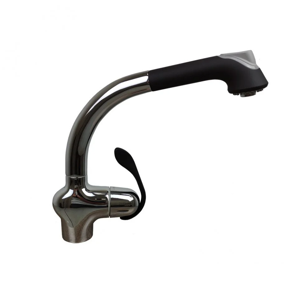 Однорычажный смеситель для кухни в универсальном цвете хром, приправленный дизайнерской "перчинкой" - деликатными акцентами в черн