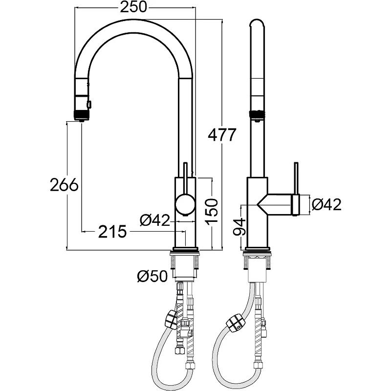 Гибкая подводка для воды, 60 см., Усиленный комплект креплений, Выход для подключения системы фильтрации воды, Переходник для подключения фильтра, Запасной аэратор