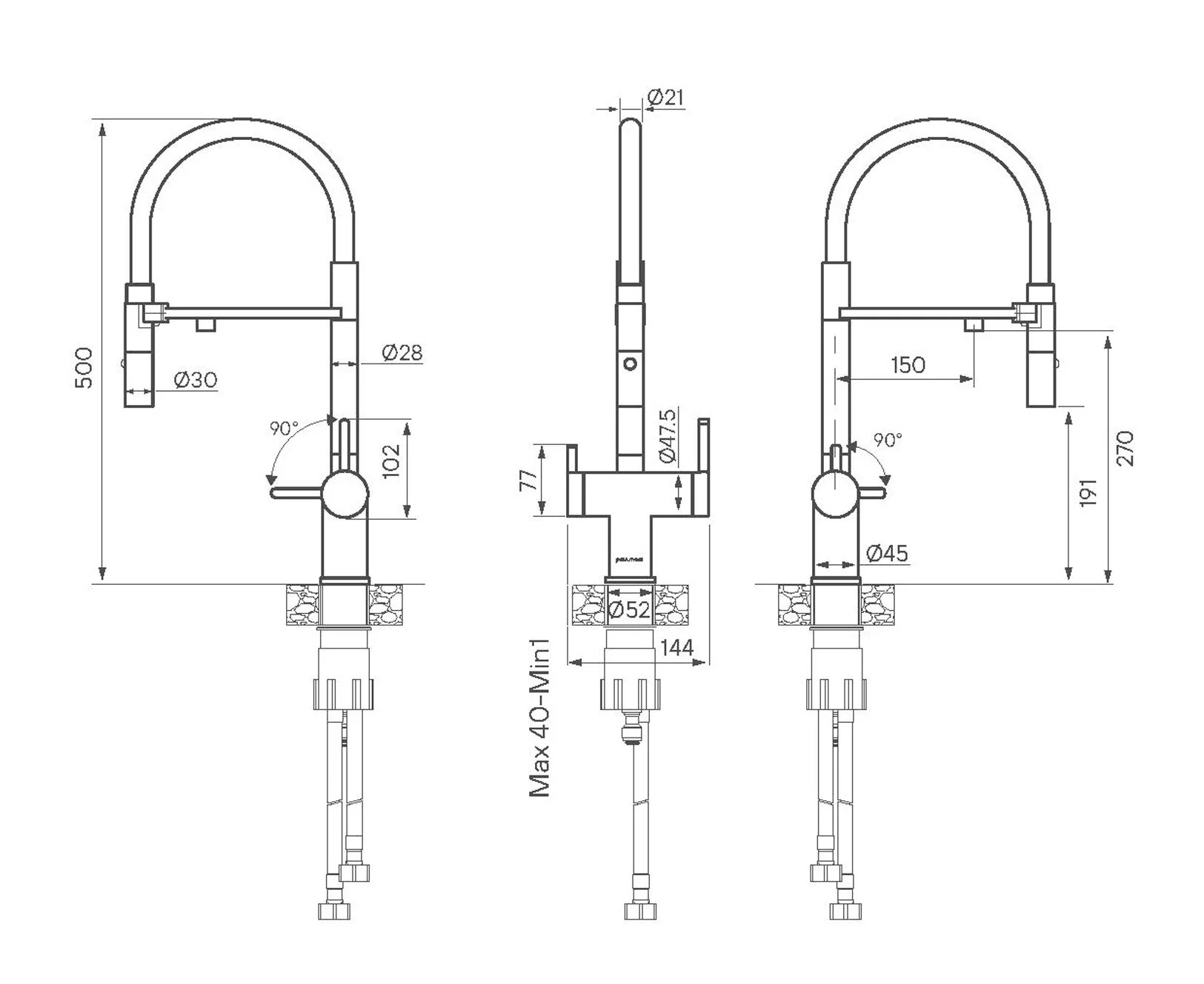 Гибкая подводка для воды, 60 см., Усиленный комплект креплений, Выход для подключения системы фильтрации воды, Переходник для подключения фильтра, Запасной аэратор
