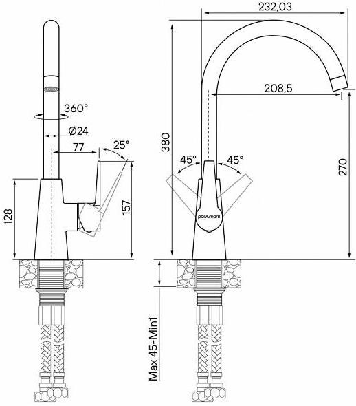 Смеситель для кухни Paulmark Holstein никель, Ho212065-NI