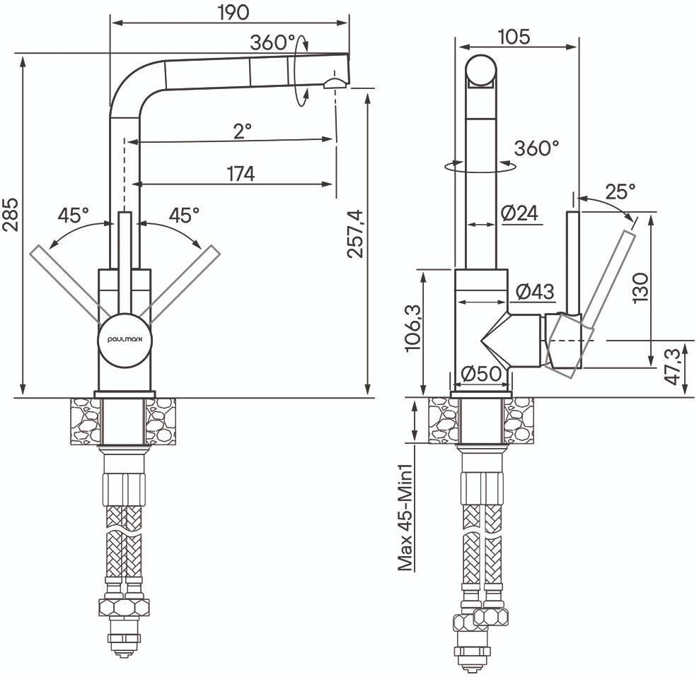 Смеситель для кухни Paulmark HONNER черный Ho212018-BLM