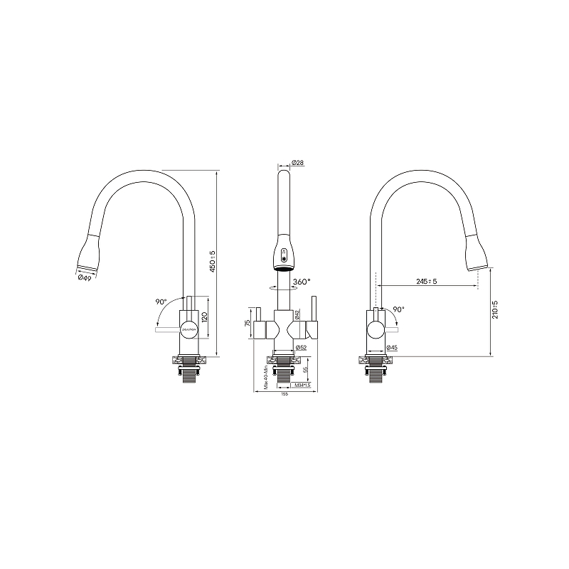 Гибкая подводка из нержавеющей стали 40 см, Усиленный комплект крепления, Переходник цанга для подключения системы фильтрации питьевой воды, Запасной аэратор.