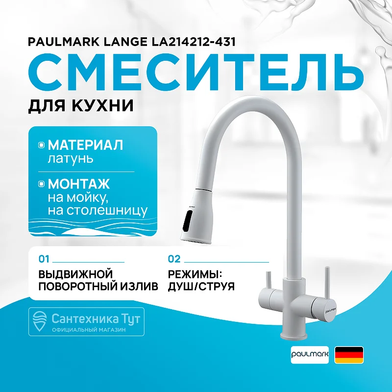 Смеситель для кухни Paulmark LANGE белый матовый La214212-WH