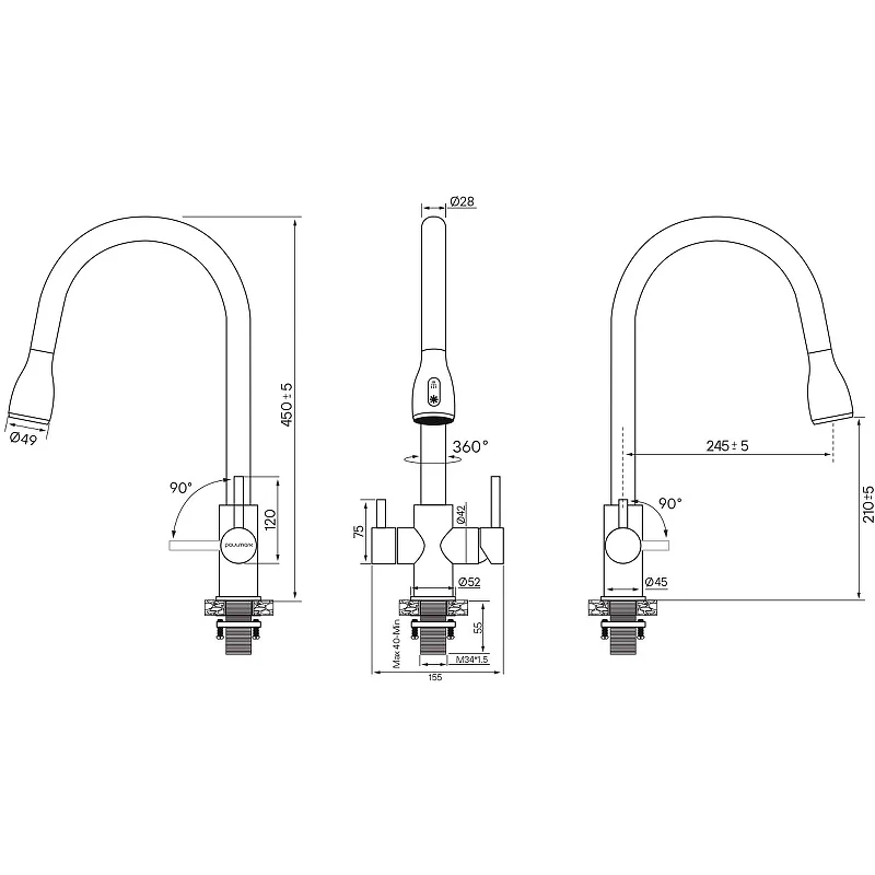 Гибкая подводка из нержавеющей стали 40 см, Усиленный комплект крепления, Переходник цанга для подключения системы фильтрации питьевой воды, Запасной аэратор.
