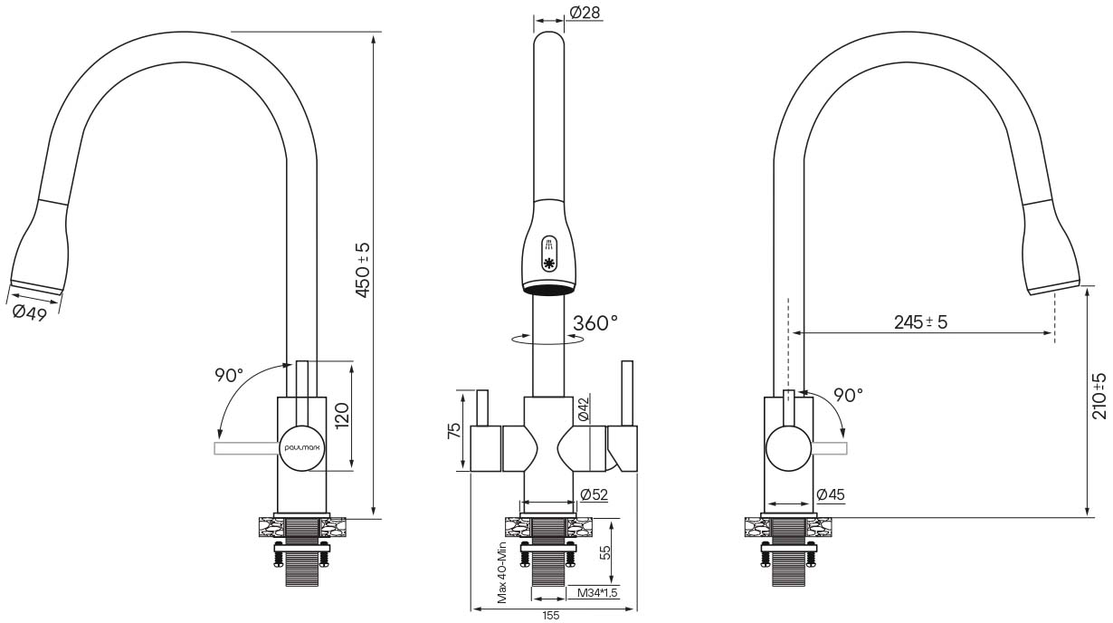 Гибкая подводка из нержавеющей стали 40 см, Усиленный комплект крепления, Переходник цанга для подключения системы фильтрации питьевой воды, Запасной аэратор.