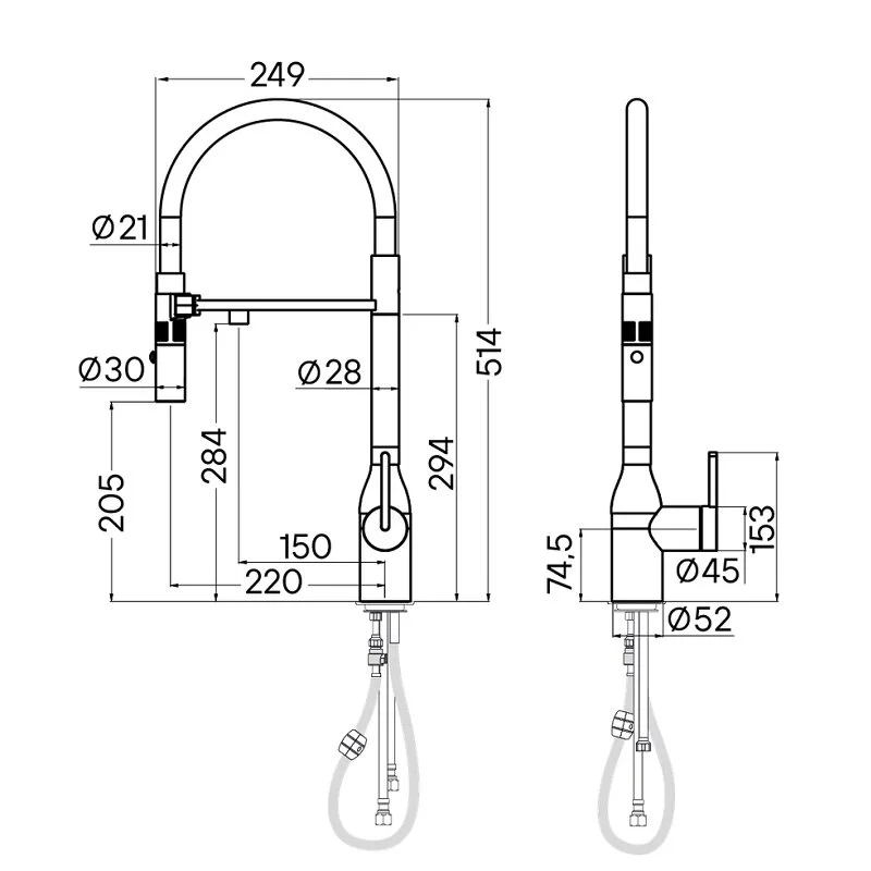 Гибкая подводка для воды, 60 см., Усиленный комплект креплений, Выход для подключения системы фильтрации воды, Переходник цанга для подключения фильтра, Запасной аэратор
