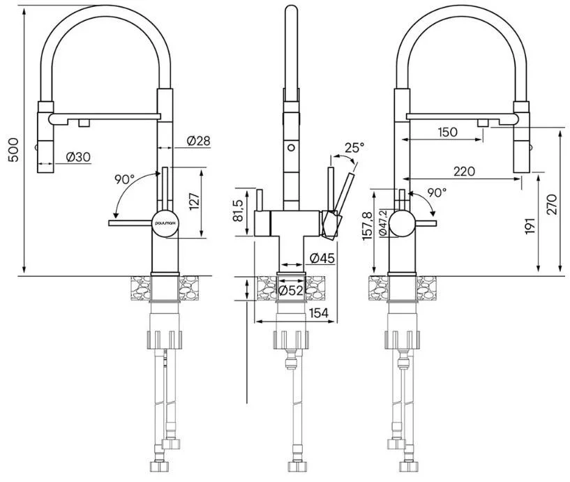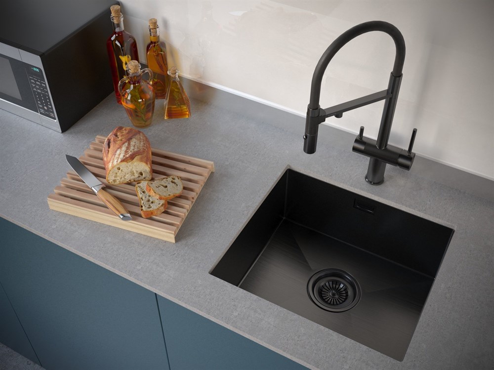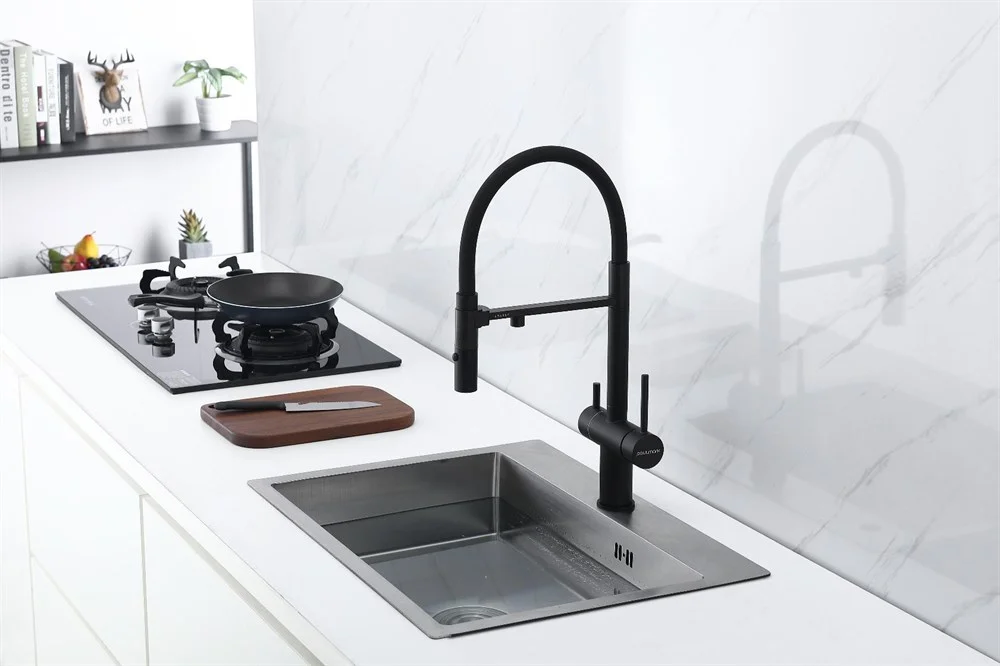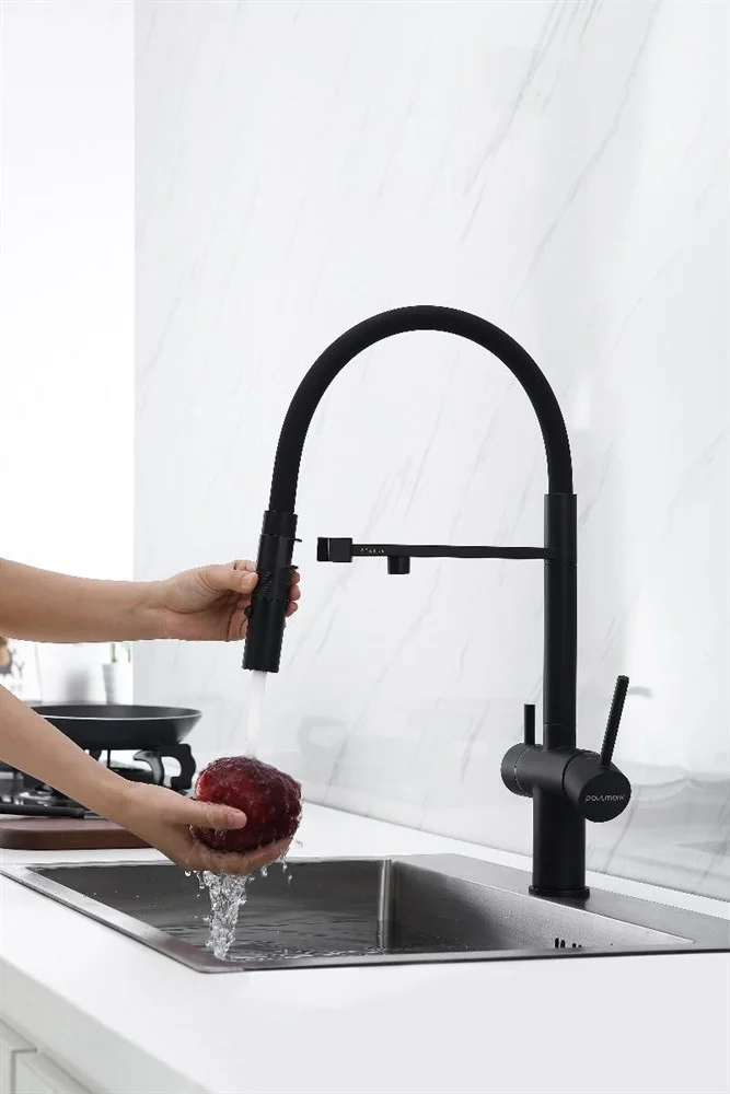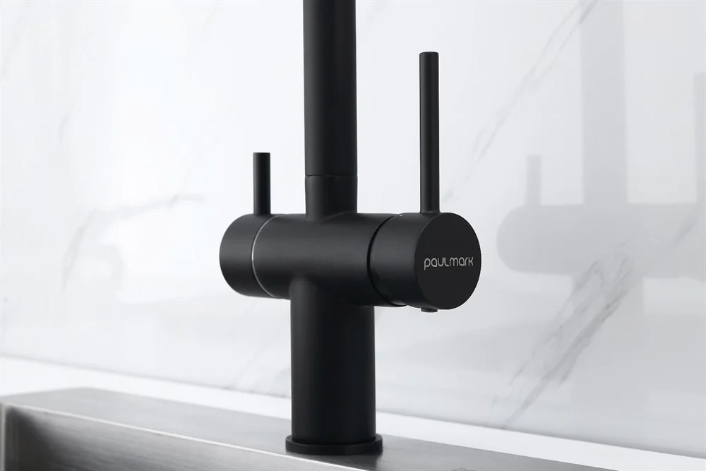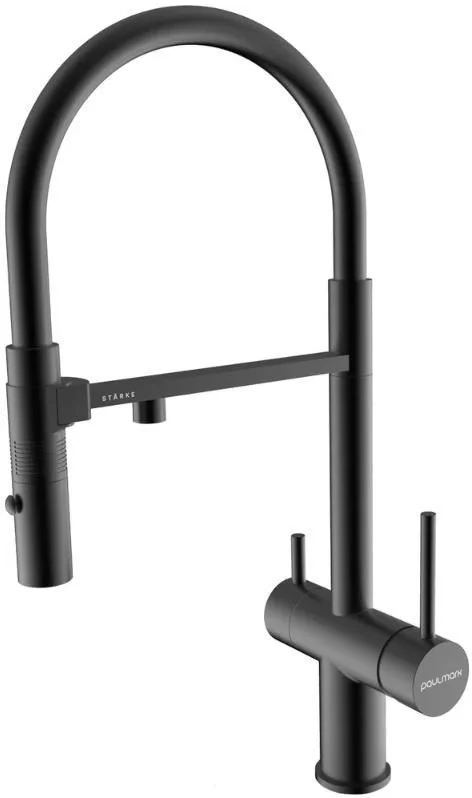 Смеситель для кухни Paulmark MAGNETO Starke, с гибким изливом, Ma213118-401, черный матовый под филь