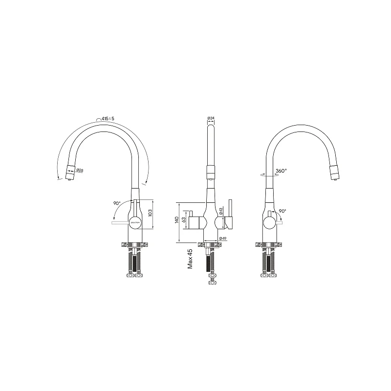 Гибкая подводка в оплётке из нейлоновй нити 40 см, Усиленный комплект крепления, Выход для подключения системы фильтрации питьевой воды, Переходник цанга для подключения системы фильтрации питьевой воды.
