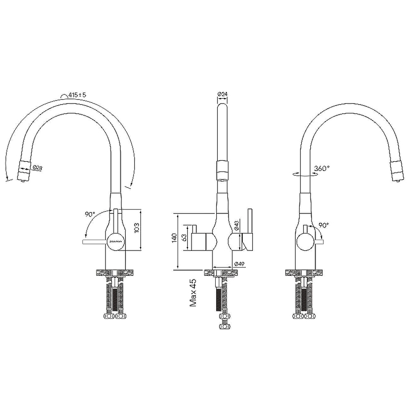 Гибкая подводка в оплётке из нейлоновй нити 40 см, Усиленный комплект крепления, Выход для подключения системы фильтрации питьевой воды, Переходник цанга для подключения системы фильтрации питьевой воды.