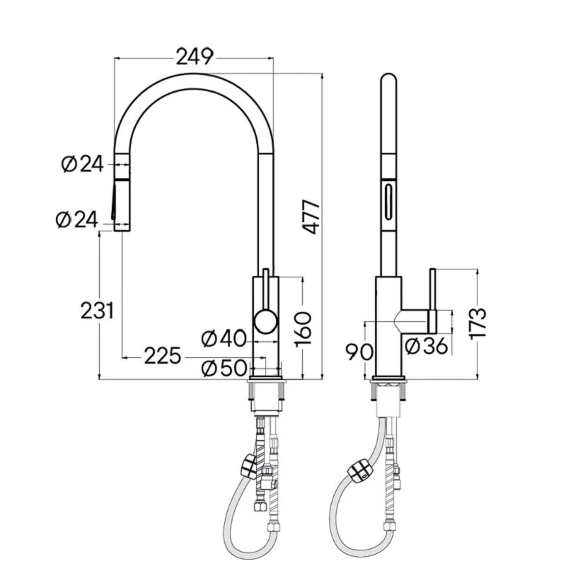 Гибкая подводка для воды, 60 см., Усиленный комплект креплений, Запасной аэратор