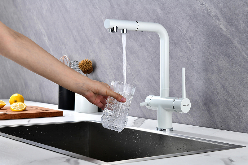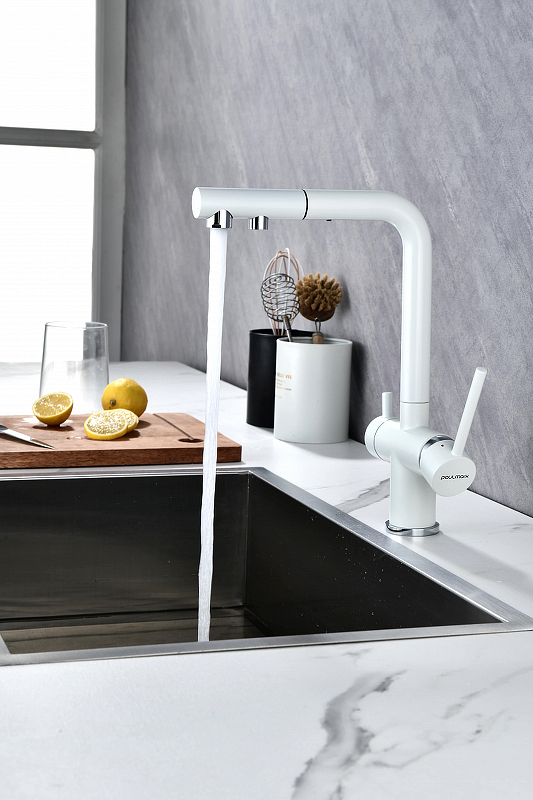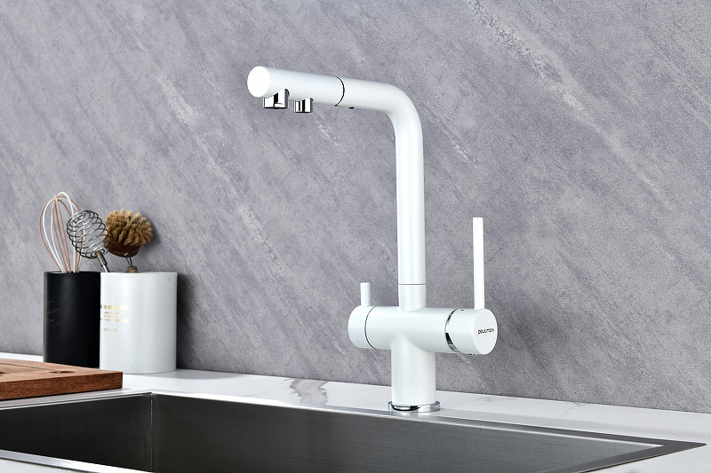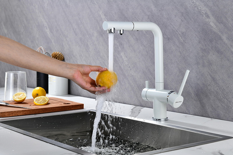 Гибкая подводка в оплётке из нейлоновй нити 40 см, Усиленный комплект крепления, Выход для подключения системы фильтрации питьевой воды, Переходник цанга для подключения системы фильтрации питьевой воды.