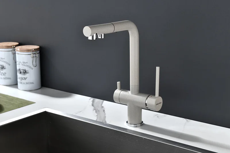 Гибкая подводка в оплётке из нейлоновй нити 40 см, Усиленный комплект крепления, Выход для подключения системы фильтрации питьевой воды, Переходник цанга для подключения системы фильтрации питьевой воды.