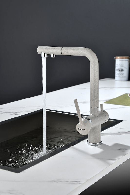Гибкая подводка в оплётке из нейлоновй нити 40 см, Усиленный комплект крепления, Выход для подключения системы фильтрации питьевой воды, Переходник цанга для подключения системы фильтрации питьевой воды.