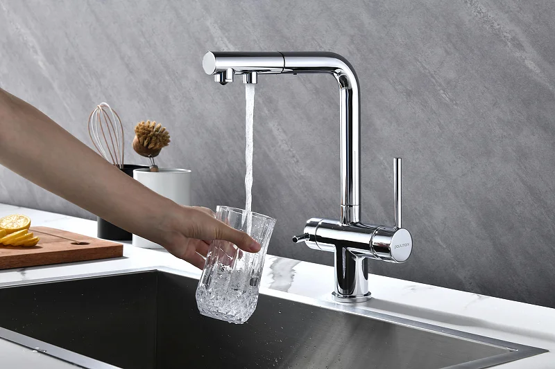 Гибкая подводка в оплётке из нейлоновй нити 40 см, Усиленный комплект крепления, Выход для подключения системы фильтрации питьевой воды, Переходник цанга для подключения системы фильтрации питьевой воды.