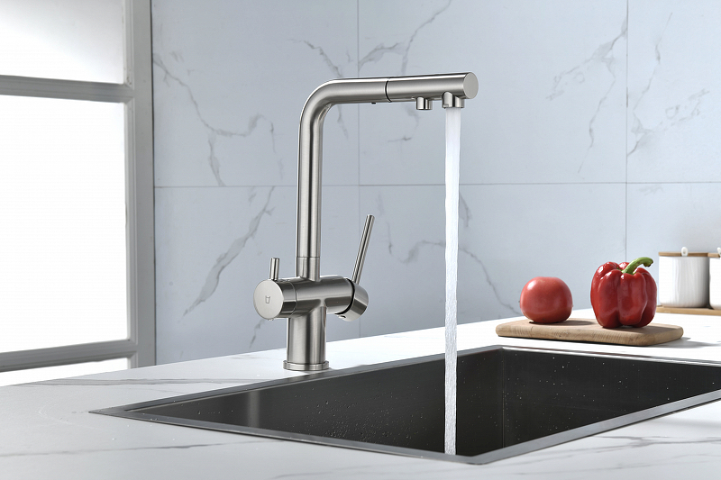 Гибкая подводка в оплётке из нейлоновй нити 40 см, Усиленный комплект крепления, Выход для подключения системы фильтрации питьевой воды, Переходник цанга для подключения системы фильтрации питьевой воды.