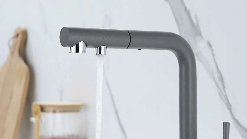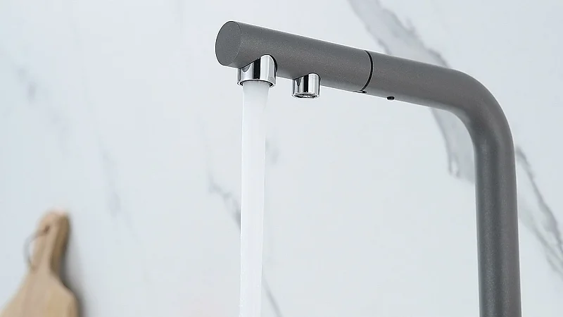 Гибкая подводка в оплётке из нейлоновй нити 40 см, Усиленный комплект крепления, Выход для подключения системы фильтрации питьевой воды, Переходник цанга для подключения системы фильтрации питьевой воды.