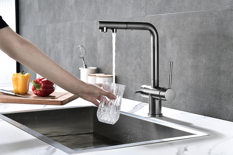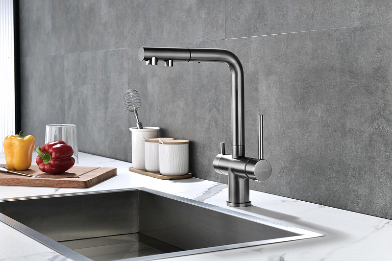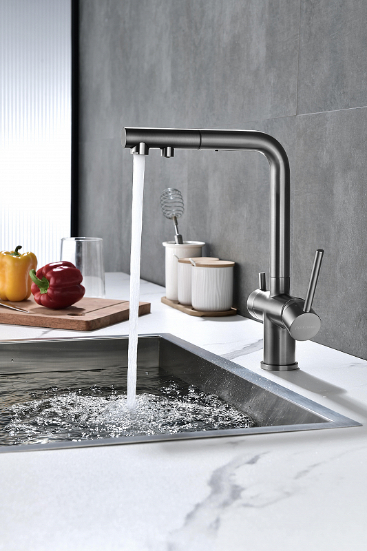 Гибкая подводка в оплётке из нейлоновй нити 40 см, Усиленный комплект крепления, Выход для подключения системы фильтрации питьевой воды, Переходник цанга для подключения системы фильтрации питьевой воды.