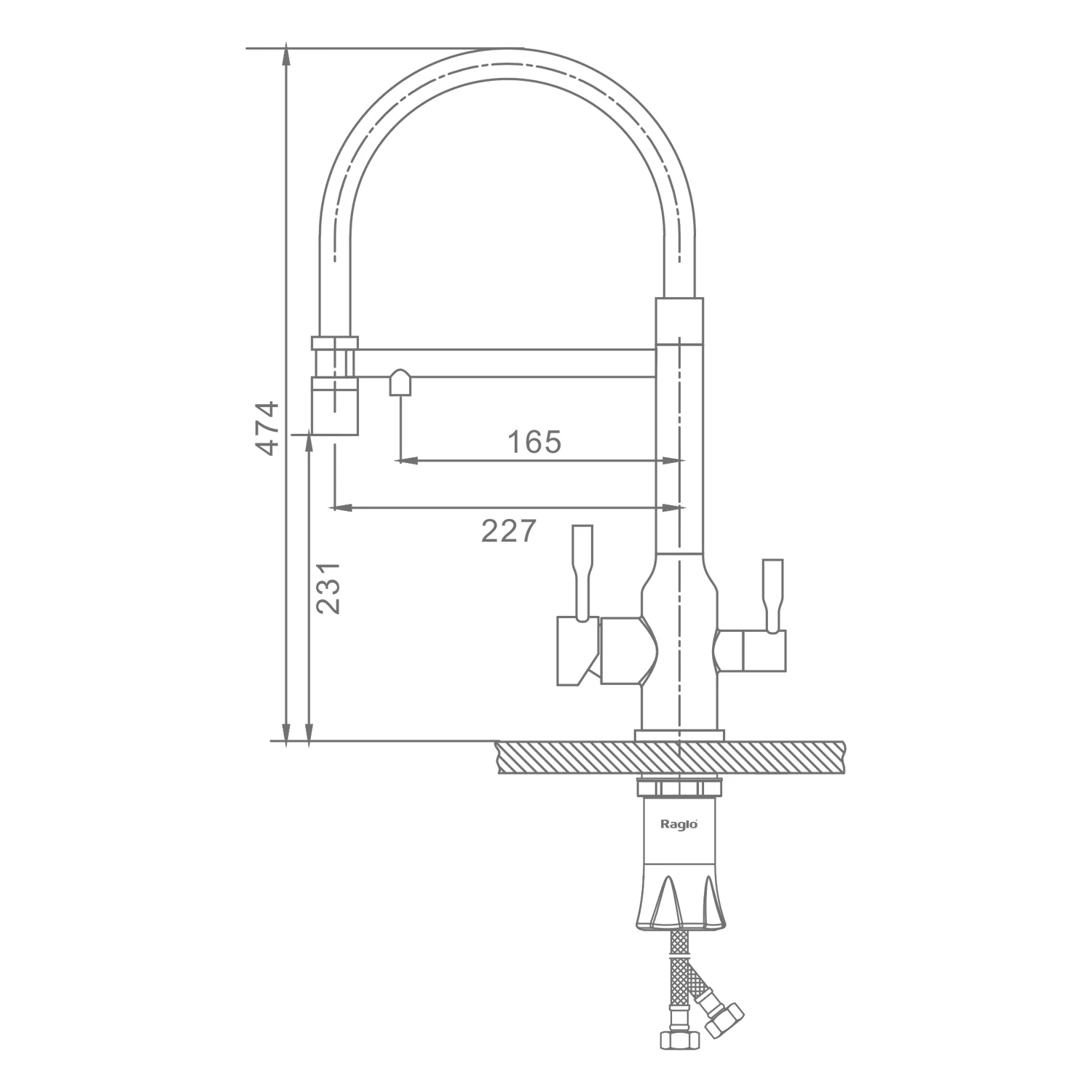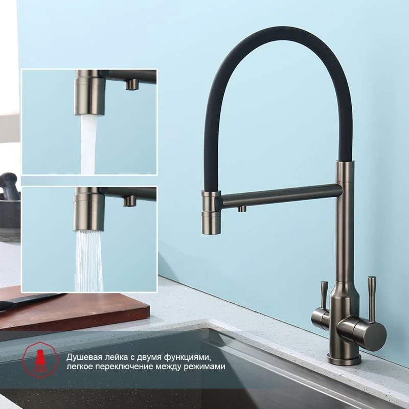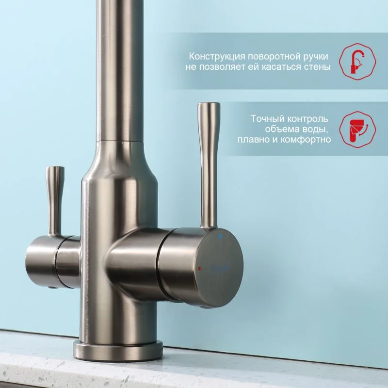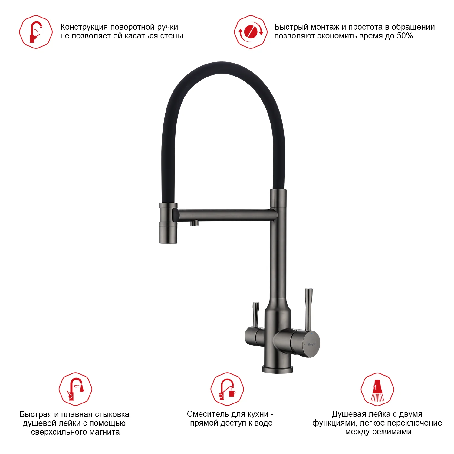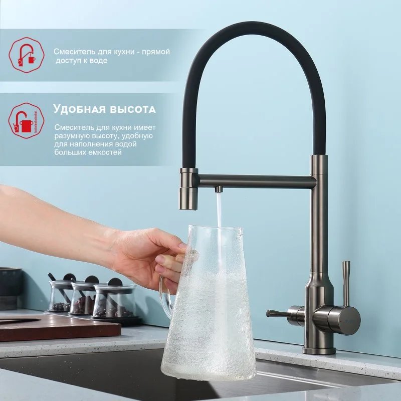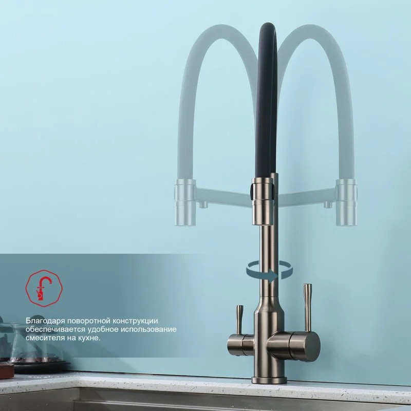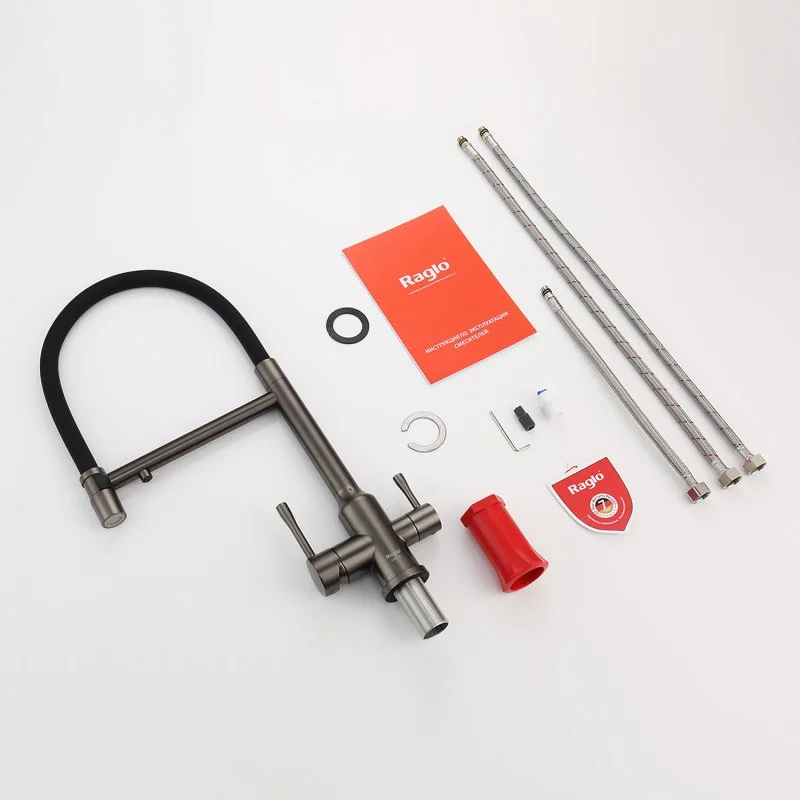 Смеситель для кухни Raglo R81.63.09 с гибким изливом с подключением к фильтру, графит