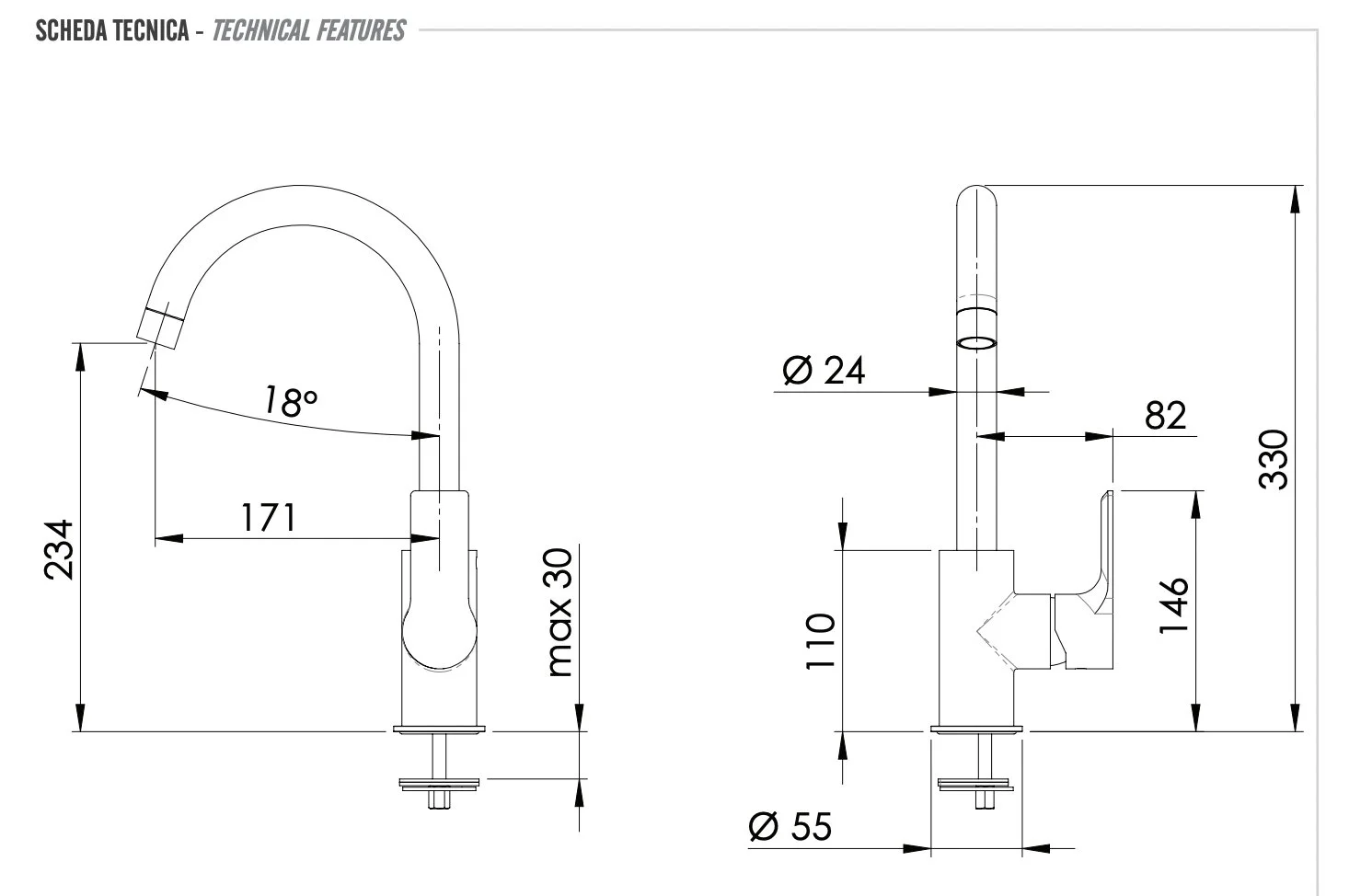 Высота излива, мм