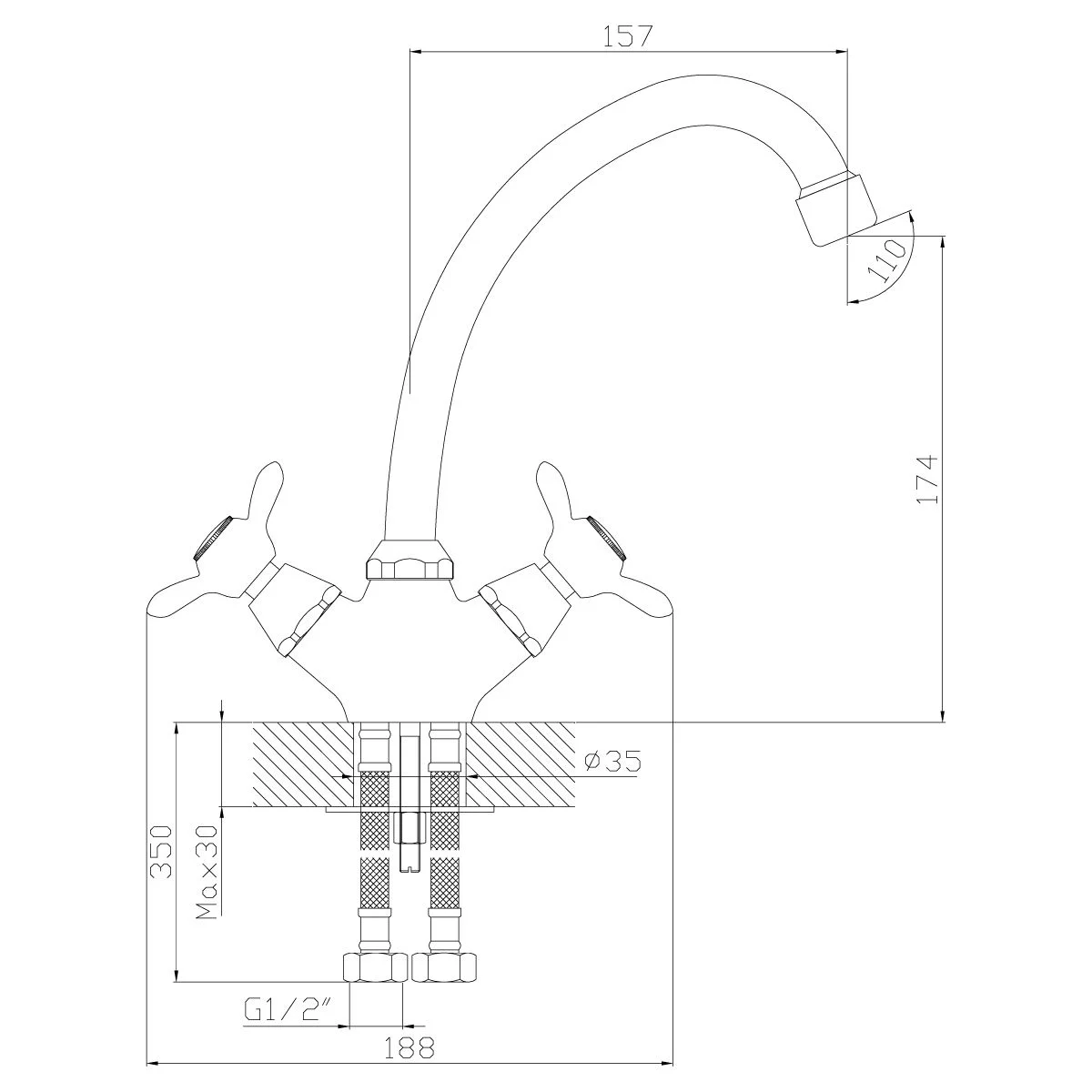 • Гибкая подводка 35 см – 2 шт.
