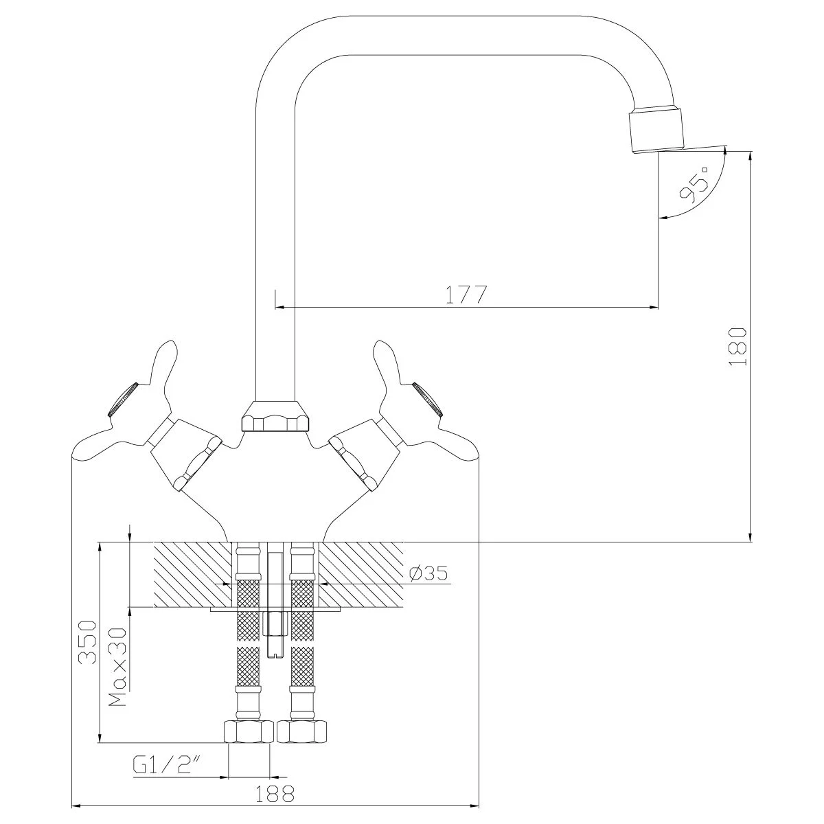 • Гибкая подводка 35 см – 2 шт.