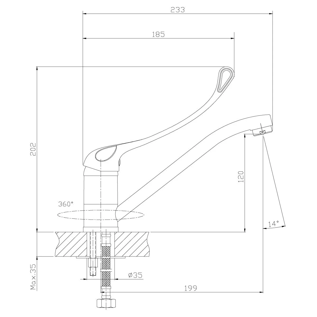 Смеситель для кухни Rossinka Y35-25 с локтевой рукояткой