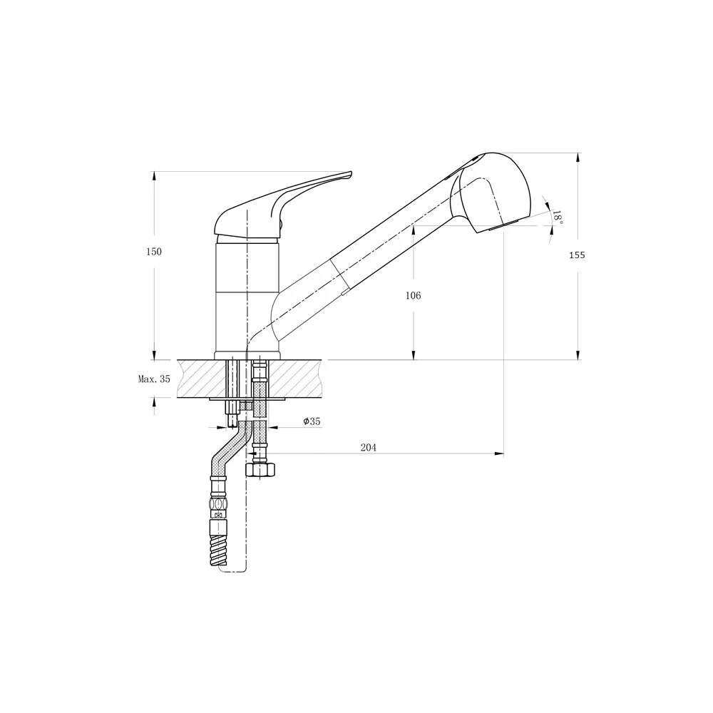 Высота излива, мм